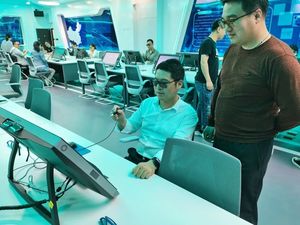 首次接受培訓(xùn)及體驗(yàn)的是來自八個(gè)學(xué)院涉及虛擬仿真教學(xué)的專業(yè)教師代表、各院實(shí)踐教學(xué)科科長及實(shí)訓(xùn)中心的全體人員,約30位老師。
